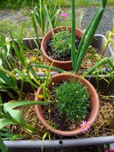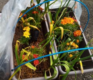 中: マリゴールドと松葉牡丹(つい昨日までポーチュラカと思い込んでいた!)。