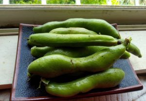 左: 今日は忘れずに仏様にお供え。蚕豆緑。
