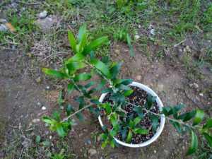 中: オリーブには新芽が白くでています。