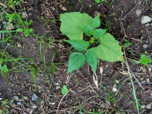 右: インゲンに本葉が出て来ました。