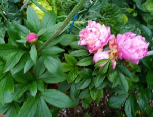 左: ペチュニアさん達。中: 芍薬の八重と手前は濃い色の芍薬かしらね。今年はオリエンタルゴールドの根塊を掘り返して球根を分けないとね。右: マーガレットが可愛い。