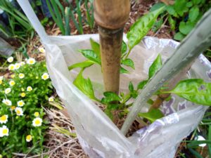 先日、潅水ボトルを庭に埋めましたが、チェックをしたら、1/5位残っていたのかな。。