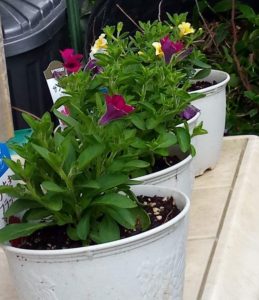 雨が激しくなる予報だったので、物干し下に避難させたペチュニア苗達です。結果、南の風だったので、ずぶ濡れになりました。いくら雨に強いペチュニアさんでも20数ミリの雨が一時降りましたから溜まったものでは無かったでしょう。良く頑張って呉れました。この次は家に入れましょう。