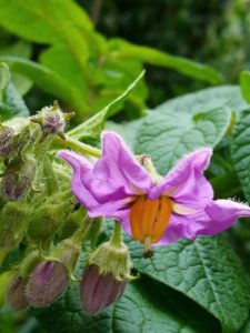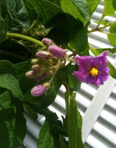 今日は庭仕事が一杯在りそうです。脇通路の突き当りのジャガイモが甲虫か幼虫にバリバリと葉を食われています。後で蚊取り線香持参で、じっくり傍に座って観察します。