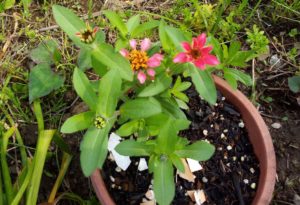 左: 花壇のジニア。