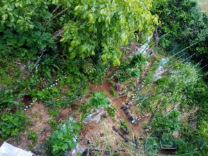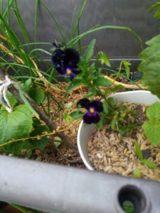 茄子の次に在ったトマトのコンパニオンのバジルは植え直して、トマトとバジルの根っ子を付けました。こうしないと、意味がないし、行灯からバジルがはみ出てしまっていたのです。バジルに花が上がっていましたから摘みました。花を育てると種を付け植物体が妊娠モードに入って葉っぱも硬くなります。常に柔らかくて美味しい葉が出ていないとサラダにも使えません。西隣さんがいらっしゃらない時は私が摘むようにしましょう。そうすれば柔らかい葉が何時でも取れます。