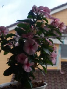 右: ニチニチソウ先生は。花で覆われています。8号の駄温鉢に移植です。玄関先に行くのは暫くしてからですね