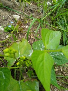 三畝のピーマンの近くに出たアブラナ科です。小松菜や高菜の穂を置きましたから、どれかが発芽してしまったのでしょう。発芽の様子はいつ見ても可愛らしく、元気を呉れるものですね。