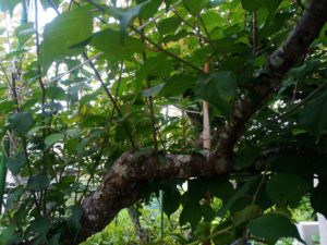 実梅の垂直枝を育てています。梅の木がどの枝を育てたいか、がよく分かります。梅雨前に夏剪定を致します太くて確りした枝を各枝2-3本残す様にします。
