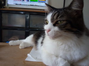 昨日、お隣から頂いた鰹を半分生で、半分蒸して食べる事にしました。トラ子も少しだけお相伴。鰹なのにオオトロがある!小父ちゃんにお礼を言いに行ったら、漁師の中には魚の目利き(プロ中のプロ!)の出来る人が居て、釣り上げた途端に自分達用に取り分けて置くんだそうです。尻尾の形とか、何処かの形や状態で”特別旨い奴”と識別が出来るんだそうですが、漁師であっても誰でも分かる訳ではないそうです。私は美味しい、と堪能しましたが、トラ子は『ちょっと脂がきついからシュコシで良いよ。』、と言って顔を洗って出て行きました。