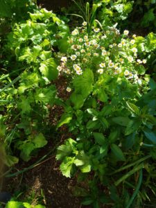 右: これは四畝の中央通路です。今年は何故か凄い勢いで縮緬紫蘇が生えています。赤紫蘇もしかり。反対側はノースポールが零れ種で出ました。