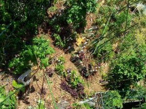 中: これがafter写真です。三畝の両脇の通路とも歩けるようになりました。畝上ではジャガイモやピーマンと葱が混植です。