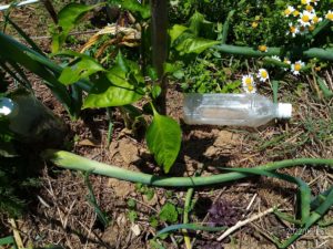 左: 苗帽子が二つ。既に左の苗帽子は葉っぱが押し合いへし合いしていますので、今日、行灯に変えます。俄か行灯信奉者です。右側の生長がイマイチだったものも苗帽子が緑になって来ましたから、葉が大きくなったのかなぁ。後でチェック!→向かって手前の苗帽子は上の写真の南瓜です。
