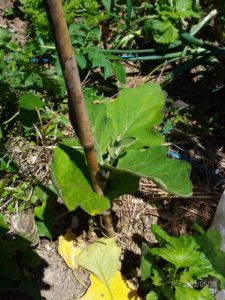 中: 私が種から促成栽培的に蒔いた茄子。品種?不明です。去年ゆあぱーくさんで買った苗でした。