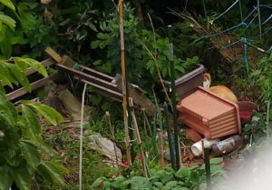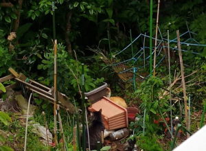実梅の長い枝を強風で根本からおられないように、30-50㎝にざっくりと切り詰めました。これから残す枝と切り落とす枝、長雨で蒸れそうなところは整理していきます。