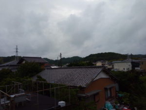 15時前、北西から黒い雲が迫っています。南東は奇麗な青空なのに…。雨雲レーダーではいつもの夕立のコースの一つで黄色や赤の雲が半島の半分まで迫っています。17時位までには海上に抜けるみたいですね。