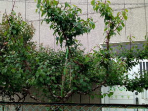 左: 実梅は長い枝だけ切り詰めました。次は22日近くまでエネルギーが地上部にあるので、触れません。右: 鹿児島紅は殆ど手付かず。