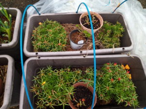 2時間くらい何やかや、と働いて来ました。夕方にはハイポネックス1000倍液を鉢物に上げます。その時に西瓜も植えましょう。