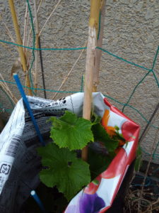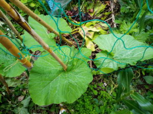 二つの行灯の南瓜がすでに行灯から出たり、出かかっています。支柱を立てないと篠竹では折れてしまいそうなので、このまま市販の支柱で補強するつもりです。
