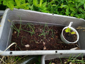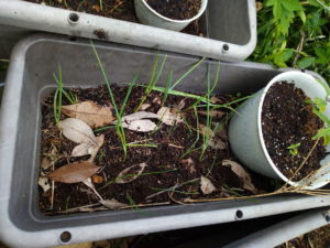 万能細葱の苗です。南東のジャガイモ後のプランターに植えてみました。