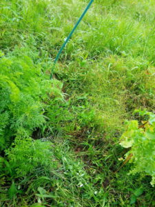 人参ベーターリッチとレタスの薹立の間です。西隣さんがなぜ生姜をやらないのか、分かりませんが、生姜と紫蘇くらい、たっぷり農薬を使っている物はないんですけれどねぇ。生姜は植えたら肥料を時々7月いっぱいまでやって後は刈草を根本に敷いたり土寄せをするだけ。