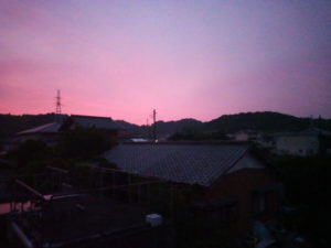 写真は3時59分の朝焼け、と4時15分の定点写真です。