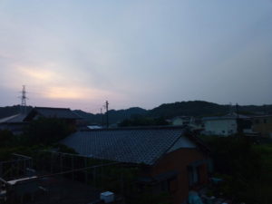 最低気温が20度台、最高気温が22-23度、曇りで夕方から雨でほぼ”雨”レベルで二時間位は”強雨(15㎜)”がありそうですが、今日中に止むという天気jpの予想です。風は南南西―南西で2-4m。weather news の予想では半分の雨量。