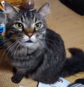 昨夜の雨は強い雨が降ることはなく、よかったですね。家ではトラ子と表から帰ってきたうめが寝ています。福は早々とお隣へ挨拶に出かけました。