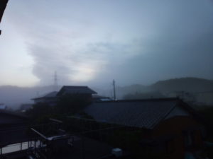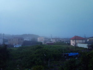 通路の庭土が深い色をしていますね。7-8時間は雨が降っていましたからね。
