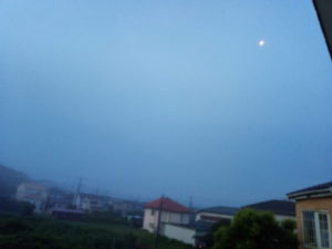 本日の日の出は4時24分、日の入りが18時56分です。真東―東北東の雲が氣になります。