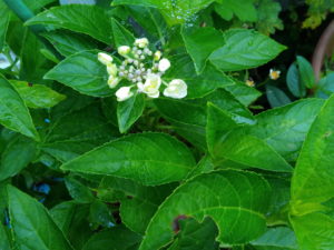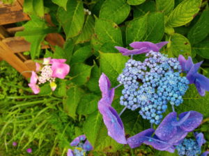 左: 紫人参の花。右: 玄関前の紫陽花。