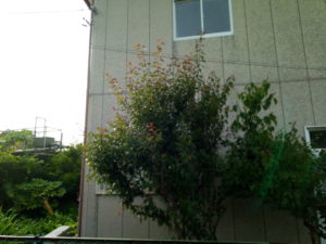 左: 22日(水)の下弦の月をすぎないと剪定ができないので、”待ち”状態の鹿児島紅。