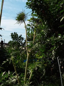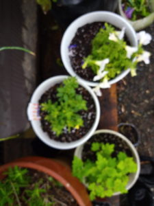 玄関前の鉢にはラッシャンセージを頂いたので植えたものが活着しています。それに合わせてピンク掛かった紫の花も苗(ダキバアレチハナガサ)を頂きました。全体的に紫が強く、背が高くなりますので、明るい背の低い花か思い切って背の高い花でまとめたい、と思って鉢を整理し、枯れたノースポールを処分しました。ジニアやマリゴールドを入れるのもアリ、かもしれません。すでにあるものは根が8号鉢いっぱいに張っていますので、小さな苗を買うのがよいかも。マリゴールドの元気な黄色や赤が良さそうな氣がします。