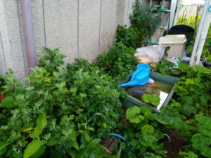 14時過ぎに今日もぶん回しをしました。水遣りではなくEM菌の補充?です。