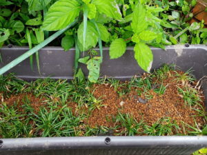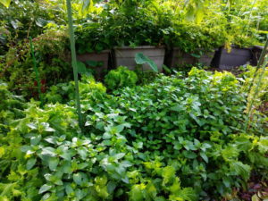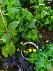 右: レモンマリゴールドタラゴンも丸く生長しました。週一の肥料が今年は効いて黄色の花を見せてくれるかな?。