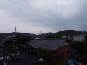表に出たら、雨がポチポチ来たので、慌ててセメントの道具をしまいました。屋根が濡れるくらいの強さです。雨雲レーダーでは1-2時間薄い雨雲が停滞し、夜になると本格的な雨雲がやってきます。修正予想よりも1-2時間強雨の時間帯が早まるかもしれません。