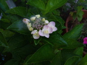 左: 私の記憶の中ではピンクのてまり紫陽花だったけれど、額紫陽花だったんですね。
