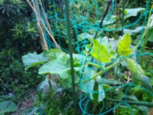 手前の南瓜は二本の子蔓を出していますが、奥の南瓜さんは未だ子蔓がみえません。すごい生長です。