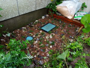 左: 菊、蓬、蕗、藪枯らしなどを取り払いました。人と言いうのはモチベーションがあると簡単に動くねぇ…面白いねぇ。水道の検針の人は大変だよな、と思いつつも、何もしなかった30年間。before 写真。