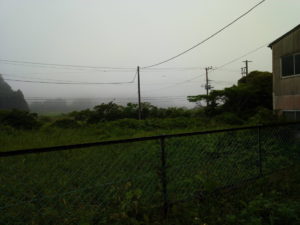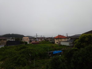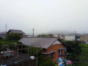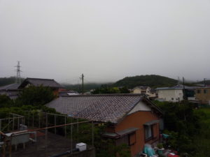 今朝も山には濃霧が掛かって来ています。あそこで止まるかな?