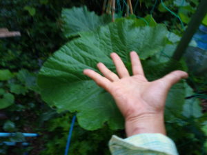 中: また大きい葉が出ました。私の広げた手の幅は22㎝位。