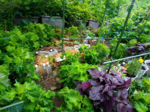 右: 他は紫蘇で日陰になってしまい三畝に引っ越しです。