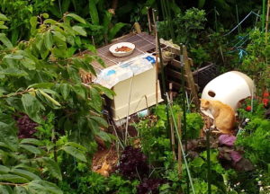 『おい、こらっ!』くらいでは”どこ吹く風!?”です。スプレーを取って水を放つと、初めて逃げましたが、届かないところへ行くとのんびり歩いて、藪漕ぎをしながらTさんのお家の方へ消えて行きました。さすがのトラちゃん、良く分かったね。煮干し一本プレゼント!