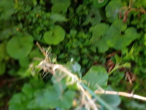 右: もう一株の南瓜も写真右上に進むか、直進するか、と迷っているようです。篠竹には上らない意志のようですね。