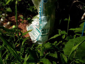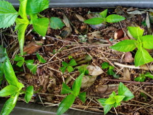 右: 真ん中の列は一昨日挿したばかりです。上下の列はもう少しで一月になるのかな。6本まとめて一鉢にします。