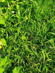 10時過ぎの暑い中で支柱組をやって、南の四―二畝を四角に囲んで組みました。こちらはネットは四畝以外は今の処、掛ける予定はありません。
