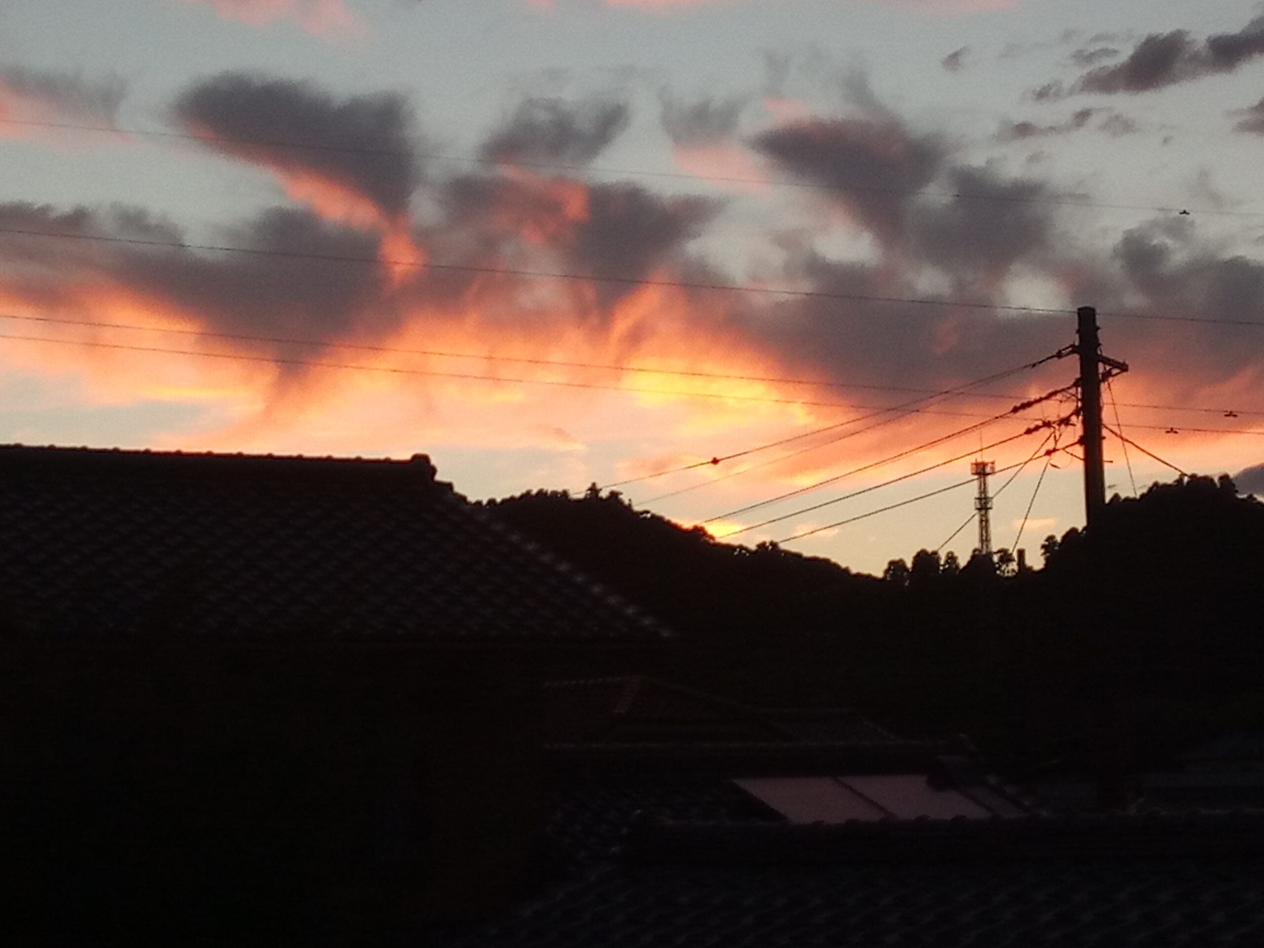 朝焼けは雨というけれど、夕焼けも朝焼けも綺麗ですよね。毎回違う色、違う光、本当にきれいですが、あっという間に変わります。改めてスマホを構え直すと色が消えていたりする!笑 でも、好いもんです。今朝も浅間様のお山が見えない位の濃い霧に覆われています。