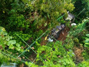 庭の水撒きをして、草花には微粉の希釈液を上げていたら、ゴーヤが一つぶら下がっていたので、我が家には一本あるからお隣にお持ちしました。