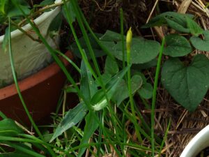 中: 雨が時折来るため、レインリリー(ゼフィランサス)がつぼみを上げています。