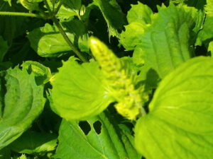 赤紫蘇に花芽(写真右)が上がって来ています。緑の紫蘇は大体赤よりも一週間位遅いのですが、上がっています。それにしても花が上がるのが早いんじゃない?例年10月5日を花穂摘みに決めていますが、今年はどうなるかな?冬が早く来るっていう事ですね。